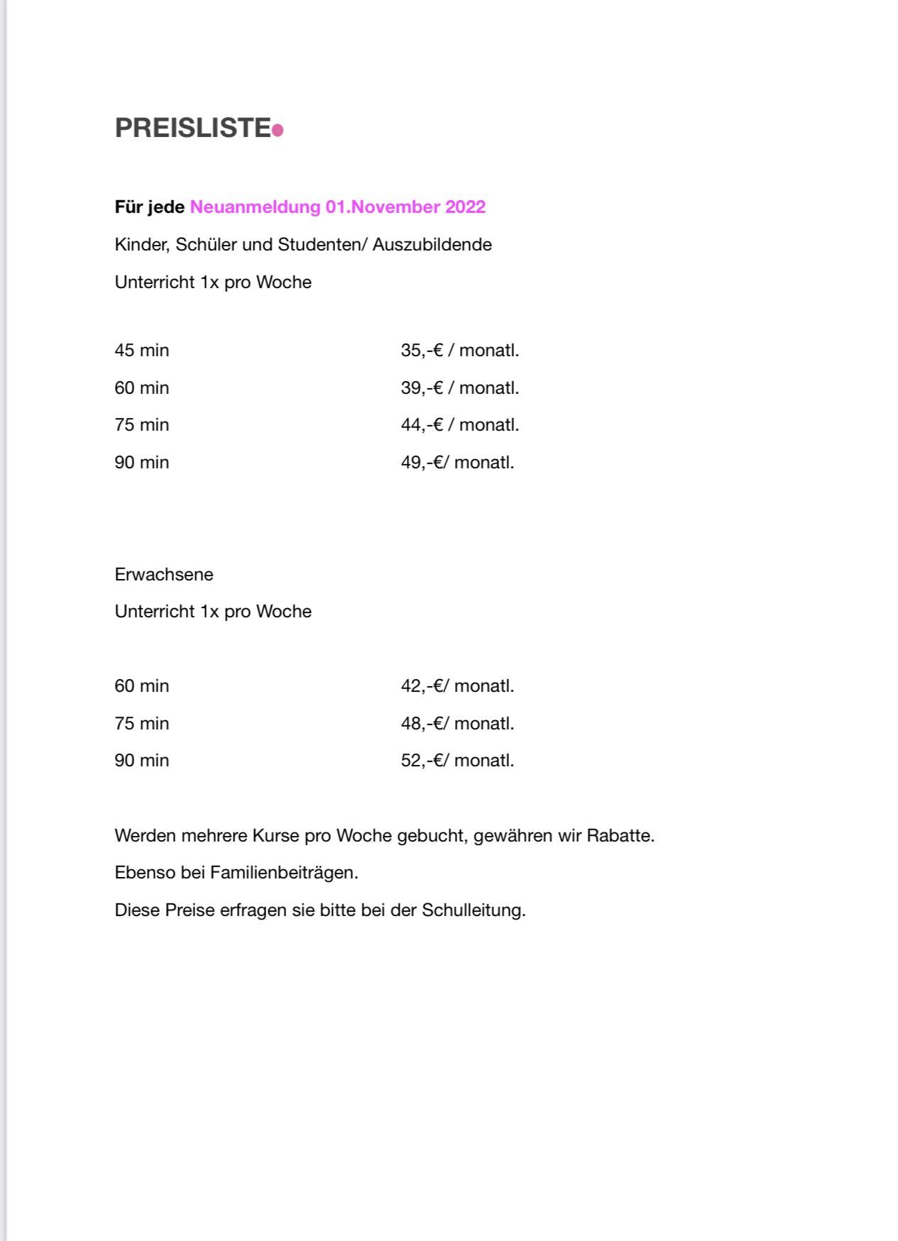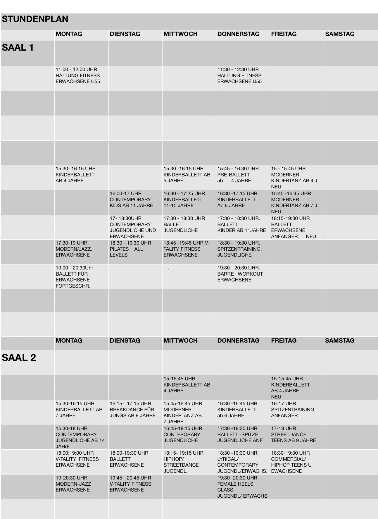 Ballett, Contemporary, Modern-Jazz, HipHop, Breakdance, HeelsClass, Lyrical, Fitness